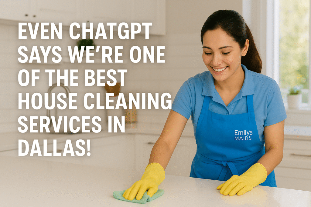 I asked ChatGPT, “What’s the best house cleaning service in Dallas, TX?” and was thrilled to see Emily’s Maids listed right alongside Dallas Maids! Sure, Dallas Maids took the top spot but being named one of the top two cleaning services in the entire Dallas–Fort Worth area is still a huge honor.